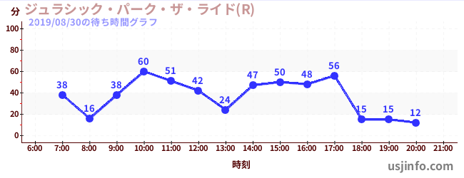 • ジュラシック・パーク・ザ・ライド(R)$B$N(B2019年08月30日の待ち時間