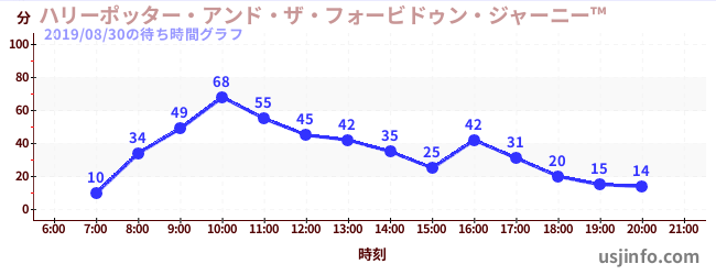 • ハリーポッター・アンド・ザ・フォービドゥン・ジャーニー™$B$N(B2019年08月30日の待ち時間