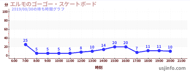 • エルモのゴーゴー・スケートボード$B$N(B2019年08月30日の待ち時間