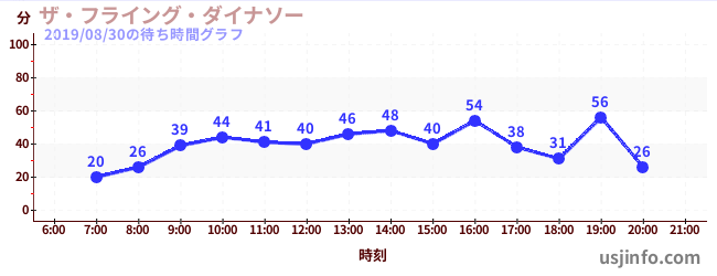 • ザ・フライング・ダイナソー$B$N(B2019年08月30日の待ち時間