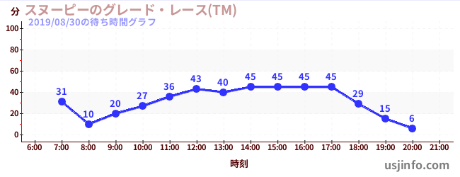 • スヌーピーのグレード・レース(TM)$B$N(B2019年08月30日の待ち時間
