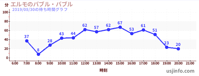 • エルモのバブル・バブル$B$N(B2019年08月30日の待ち時間