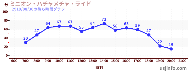 • ミニオン・ハチャメチャ・ライド$B$N(B2019年08月30日の待ち時間