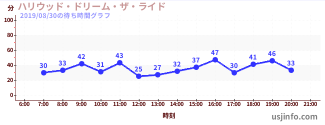 • ハリウッド・ドリーム・ザ・ライド$B$N(B2019年08月30日の待ち時間