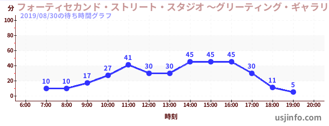 • フォーティセカンド・ストリート・スタジオ ~グリーティング・ギャラリー~ ミニオン$B$N(B2019年08月30日の待ち時間