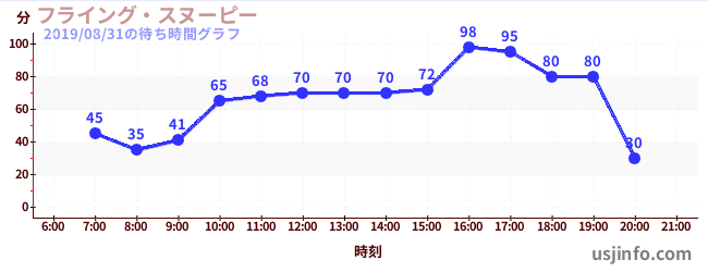 • フライング・スヌーピー$B$N(B2019年08月31日の待ち時間