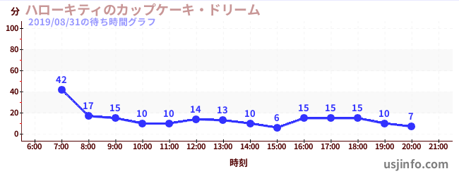 • ハローキティのカップケーキ・ドリーム$B$N(B2019年08月31日の待ち時間