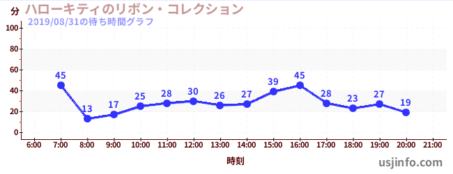 • ハローキティのリボン・コレクション$B$N(B2019年08月31日の待ち時間