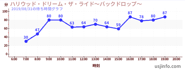 • ハリウッド・ドリーム・ザ・ライド〜バックドロップ〜$B$N(B2019年08月31日の待ち時間