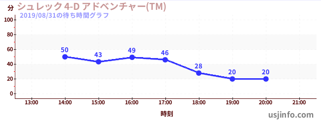 • シュレック 4-D アドベンチャー(TM)$B$N(B2019年08月31日の待ち時間