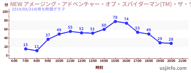 • NEW アメージング・アドベンチャー・オブ・スパイダーマン(TM)・ザ・ライド 4K3D$B$N(B2019年08月31日の待ち時間