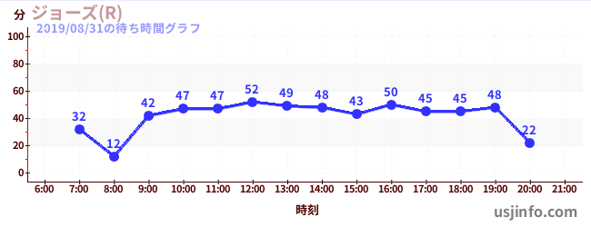 • ジョーズ(R)$B$N(B2019年08月31日の待ち時間