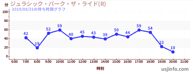 • ジュラシック・パーク・ザ・ライド(R)$B$N(B2019年08月31日の待ち時間