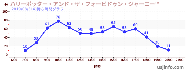 • ハリーポッター・アンド・ザ・フォービドゥン・ジャーニー™$B$N(B2019年08月31日の待ち時間