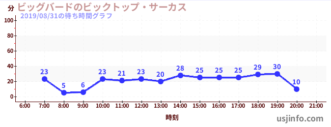 • ビッグバードのビックトップ・サーカス$B$N(B2019年08月31日の待ち時間