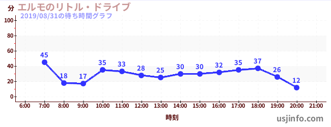 • エルモのリトル・ドライブ$B$N(B2019年08月31日の待ち時間