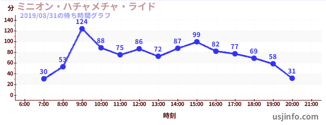 • ミニオン・ハチャメチャ・ライド$B$N(B2019年08月31日の待ち時間