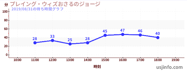 • プレイング・ウィズおさるのジョージ$B$N(B2019年08月31日の待ち時間