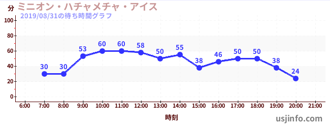 • ミニオン・ハチャメチャ・アイス$B$N(B2019年08月31日の待ち時間