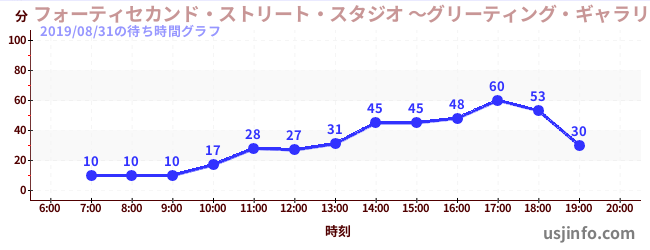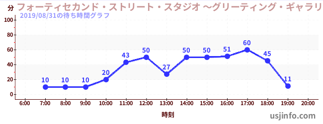 • フォーティセカンド・ストリート・スタジオ ~グリーティング・ギャラリー~ ミニオン$B$N(B2019年08月31日の待ち時間