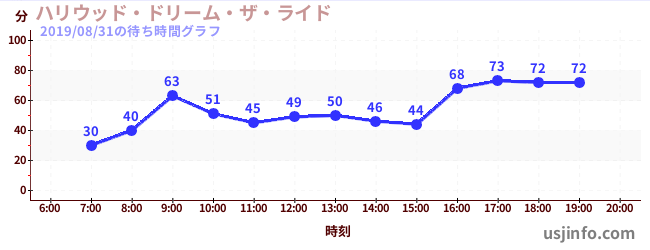 • ハリウッド・ドリーム・ザ・ライド$B$N(B2019年08月31日の待ち時間