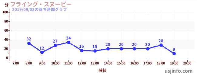 • フライング・スヌーピー$B$N(B2019年09月02日の待ち時間