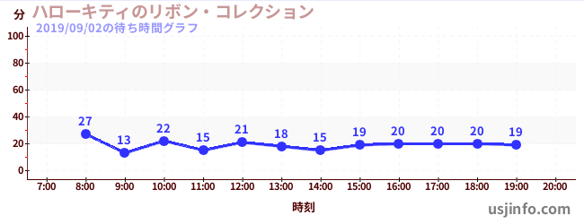 • ハローキティのリボン・コレクション$B$N(B2019年09月02日の待ち時間