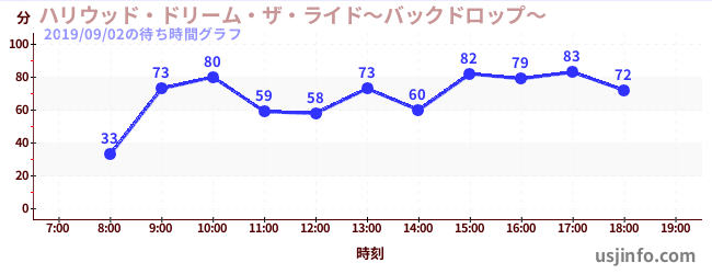 • ハリウッド・ドリーム・ザ・ライド〜バックドロップ〜$B$N(B2019年09月02日の待ち時間