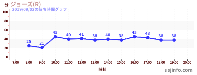 • ジョーズ(R)$B$N(B2019年09月02日の待ち時間