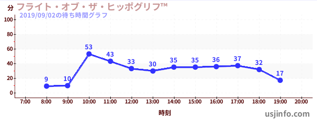 • フライト・オブ・ザ・ヒッポグリフ™$B$N(B2019年09月02日の待ち時間