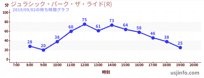 • ジュラシック・パーク・ザ・ライド(R)$B$N(B2019年09月02日の待ち時間