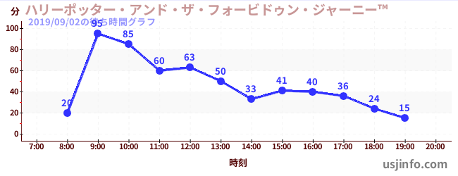 • ハリーポッター・アンド・ザ・フォービドゥン・ジャーニー™$B$N(B2019年09月02日の待ち時間