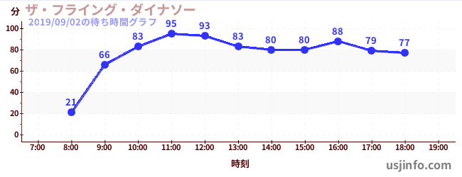 • ザ・フライング・ダイナソー$B$N(B2019年09月02日の待ち時間