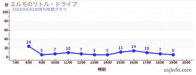 • エルモのリトル・ドライブ$B$N(B2019年09月02日の待ち時間