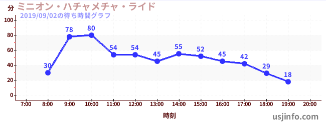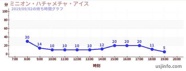 • ミニオン・ハチャメチャ・ライド$B$N(B2019年09月02日の待ち時間