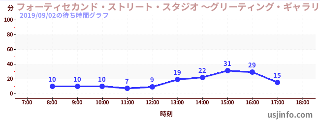 • フォーティセカンド・ストリート・スタジオ ~グリーティング・ギャラリー~ ミニオン$B$N(B2019年09月02日の待ち時間