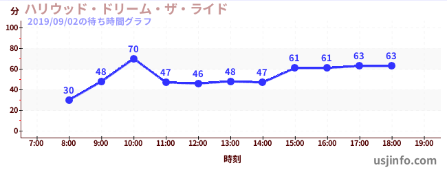 • ハリウッド・ドリーム・ザ・ライド$B$N(B2019年09月02日の待ち時間