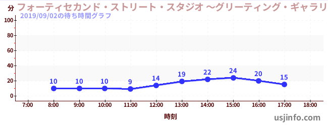 • フォーティセカンド・ストリート・スタジオ ~グリーティング・ギャラリー~ ピーナッツの仲間たち$B$N(B2019年09月02日の待ち時間