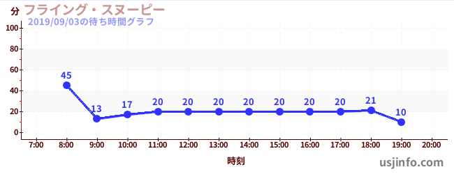 • フライング・スヌーピー$B$N(B2019年09月03日の待ち時間