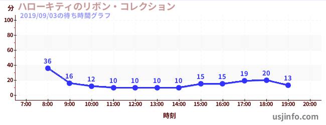• ハローキティのリボン・コレクション$B$N(B2019年09月03日の待ち時間