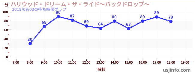 • ハリウッド・ドリーム・ザ・ライド〜バックドロップ〜$B$N(B2019年09月03日の待ち時間