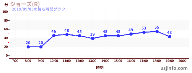• ジョーズ(R)$B$N(B2019年09月03日の待ち時間