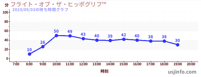 • フライト・オブ・ザ・ヒッポグリフ™$B$N(B2019年09月03日の待ち時間