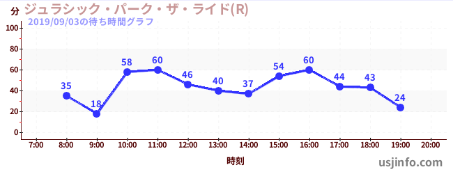 • ジュラシック・パーク・ザ・ライド(R)$B$N(B2019年09月03日の待ち時間