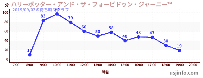 • ハリーポッター・アンド・ザ・フォービドゥン・ジャーニー™$B$N(B2019年09月03日の待ち時間