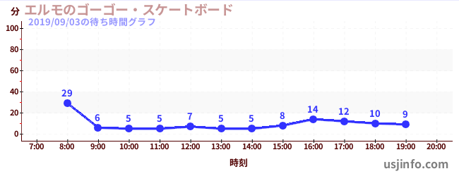 • エルモのゴーゴー・スケートボード$B$N(B2019年09月03日の待ち時間