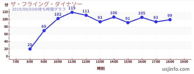 • ザ・フライング・ダイナソー$B$N(B2019年09月03日の待ち時間