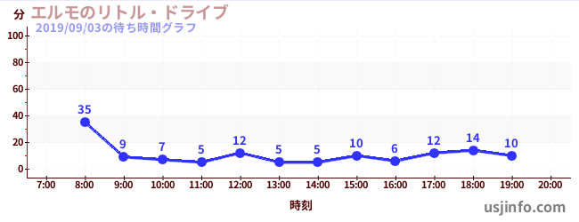 • エルモのリトル・ドライブ$B$N(B2019年09月03日の待ち時間