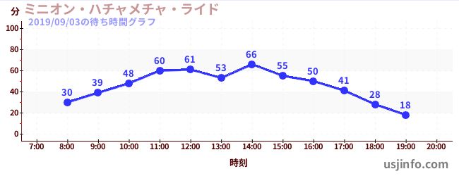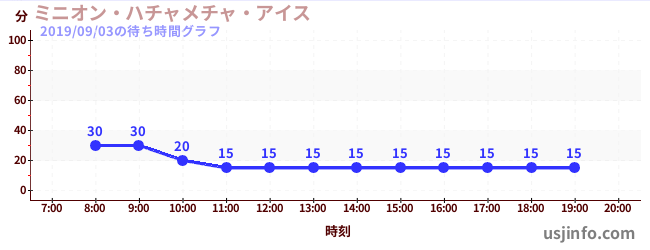 • ミニオン・ハチャメチャ・ライド$B$N(B2019年09月03日の待ち時間