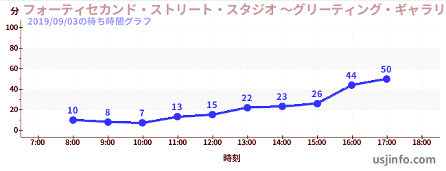 • フォーティセカンド・ストリート・スタジオ ~グリーティング・ギャラリー~ ミニオン$B$N(B2019年09月03日の待ち時間